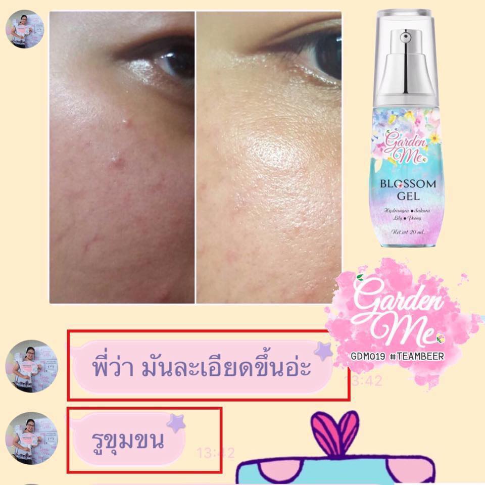 Garden Me Blossom Gel กดเซรั่มลงบนฝ่ามือลูบไล้ให้ทั่ว ใบหน้าและลำคอ เป้นประจำ เช้า เย็น