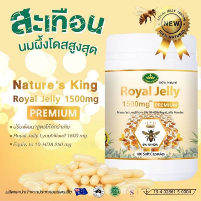 | nature king royal jelly premium 1500mg เนเจอร์คิงส์ นมผึ้ง พรีเมี่ยม สูตรใหม่ เข้มข้น