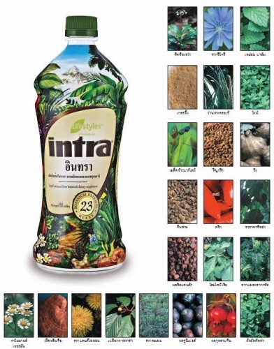 สารสกัดจากสมุนไพรทั้ง 23 ชนิดที่มีในอินทราซึ่งผ่านการทดสอบ