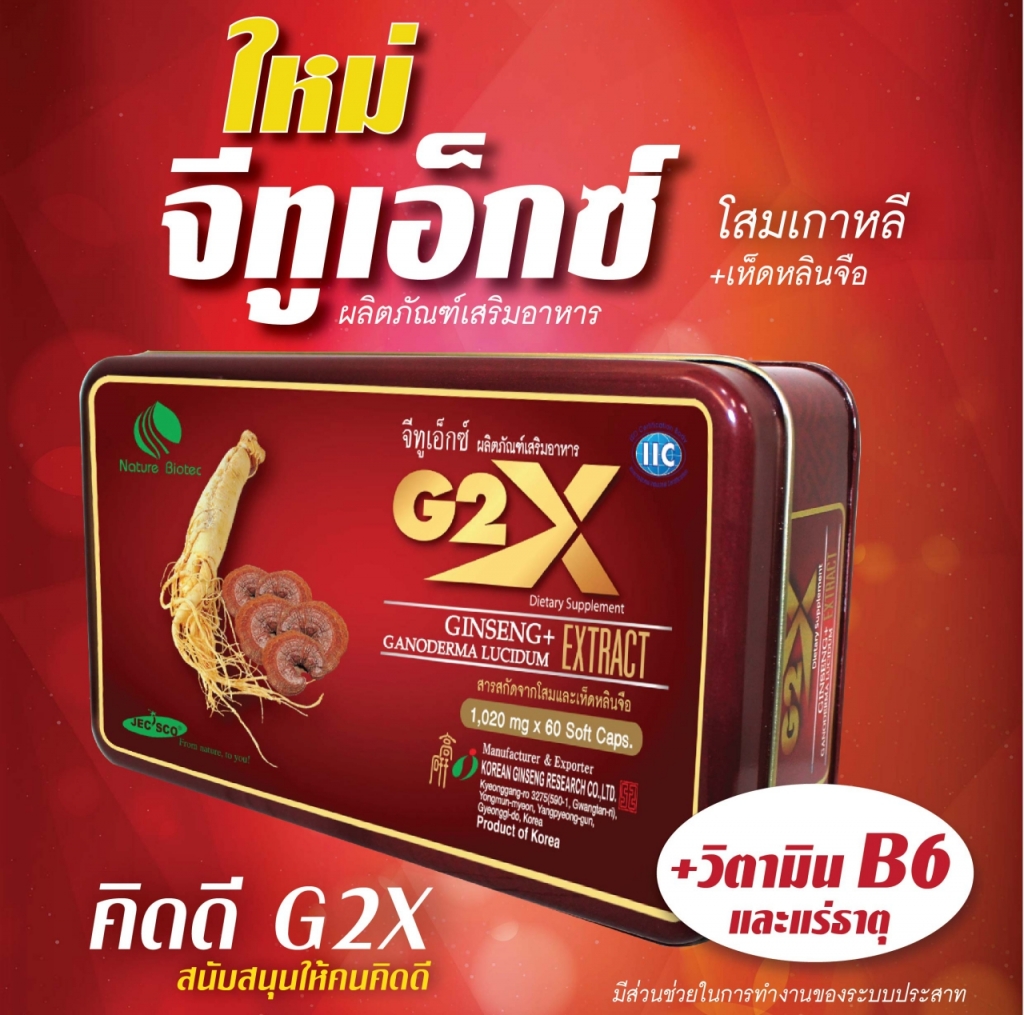 G2X จีทูเอ็กซ์ โสมเกาหลีผสมเห็ดหลินจือ มีวิตามินและแร่ธาตุต่างๆ บำรุงร่างกายและสมอง ![]()